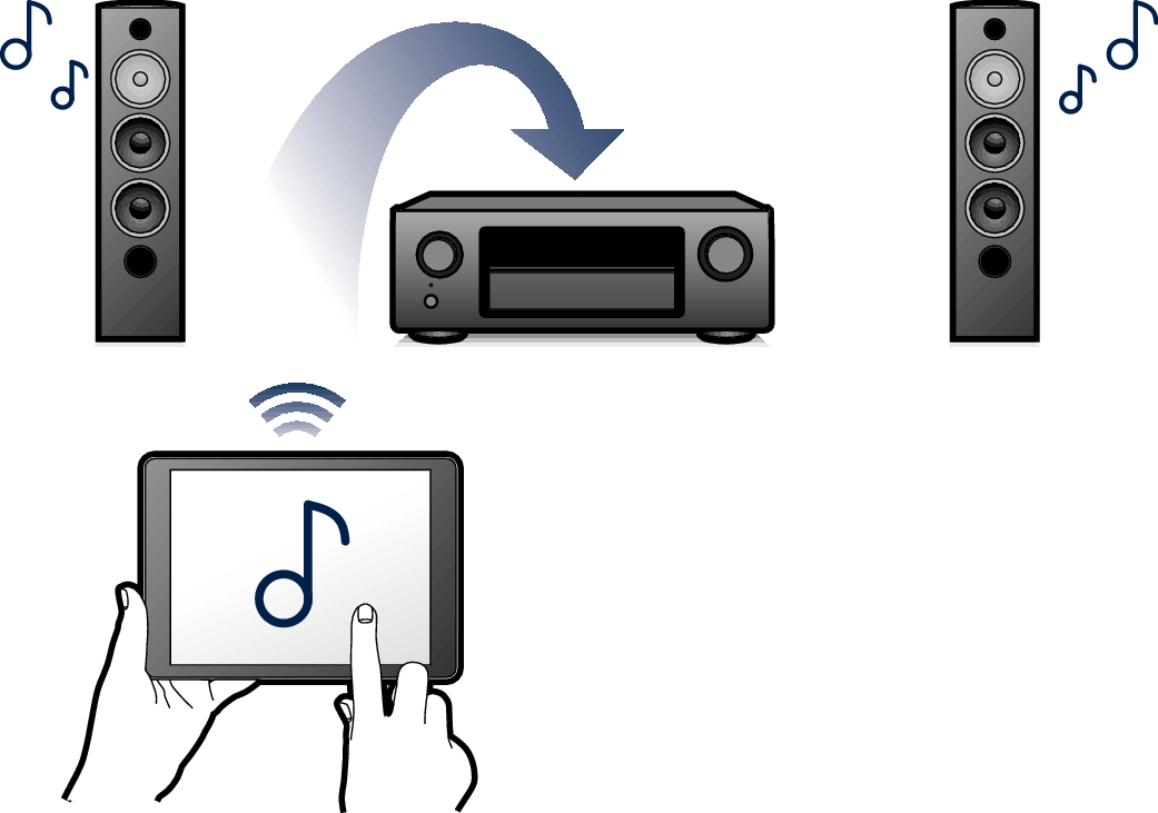 Sie können Musik auch einfach wiedergeben, indem Sie eine WLAN-Verbindung zu Ihrem Smartphone, Tablet-PC, PC usw. herstellen.