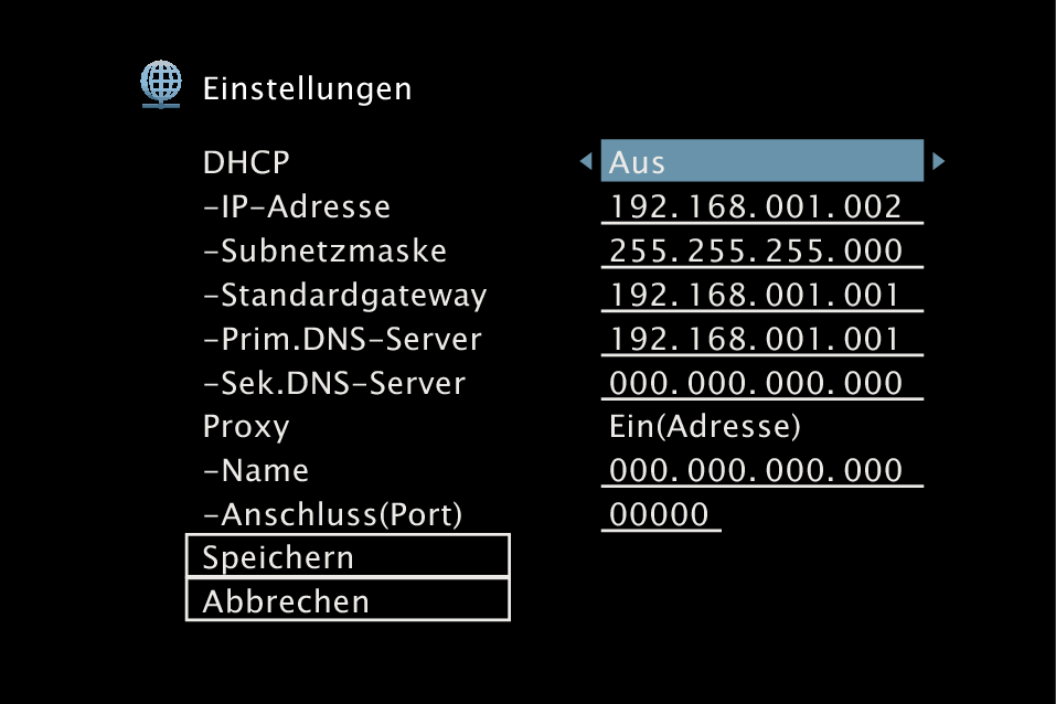 Die Netzwerkeinstellungen werden manuell vorgenommen. |