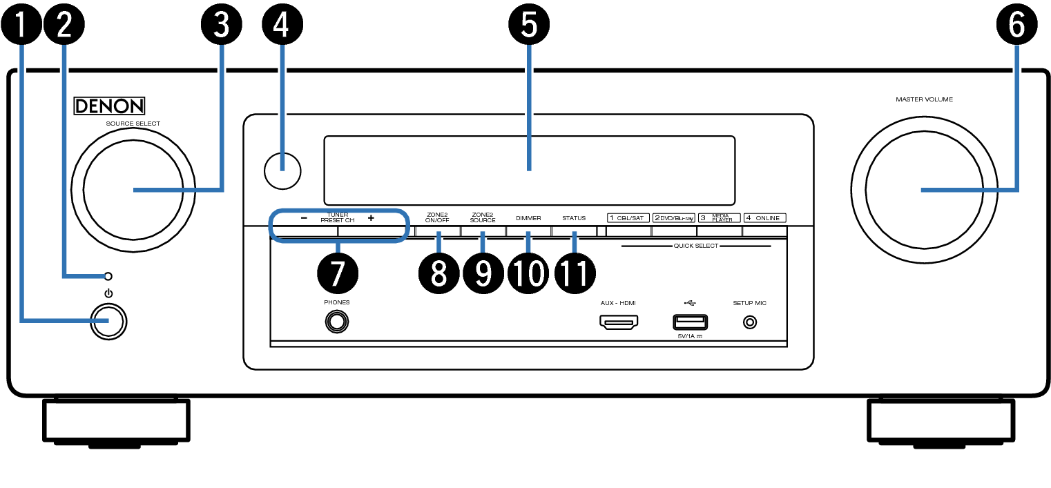 Dient zum Ein-/Ausschalten (Standby-Modus) der MAIN ZONE (Raum, in dem sich das Gerät befindet). Link