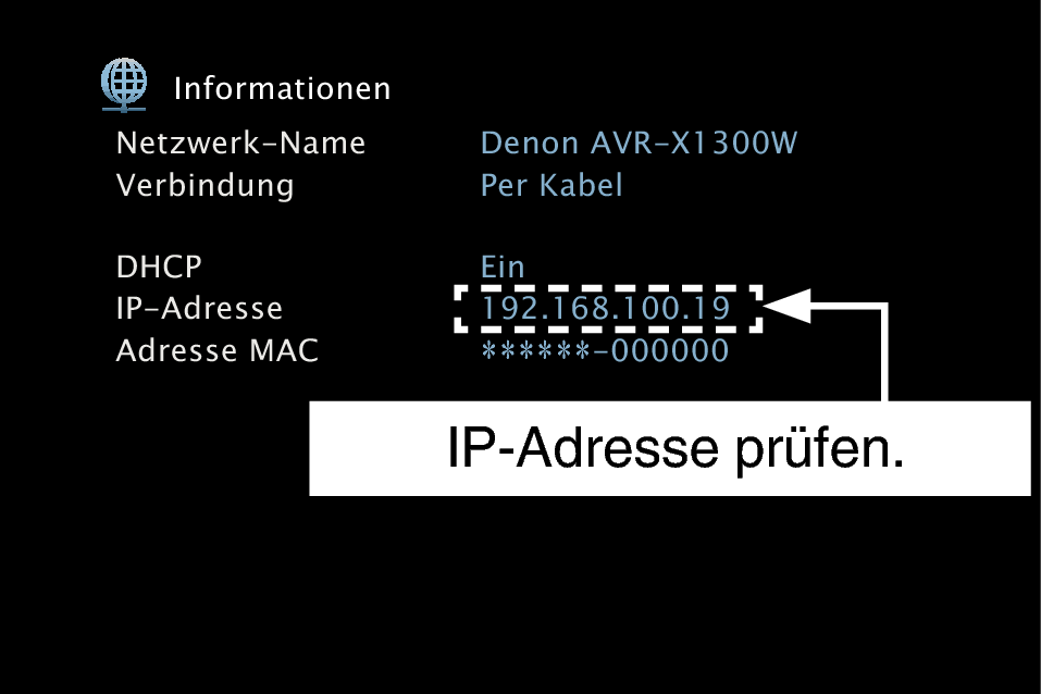 Zur Kontrolle der IP-Adresse dieses Gerätes wählen Sie im Menü “Informationen”. Link