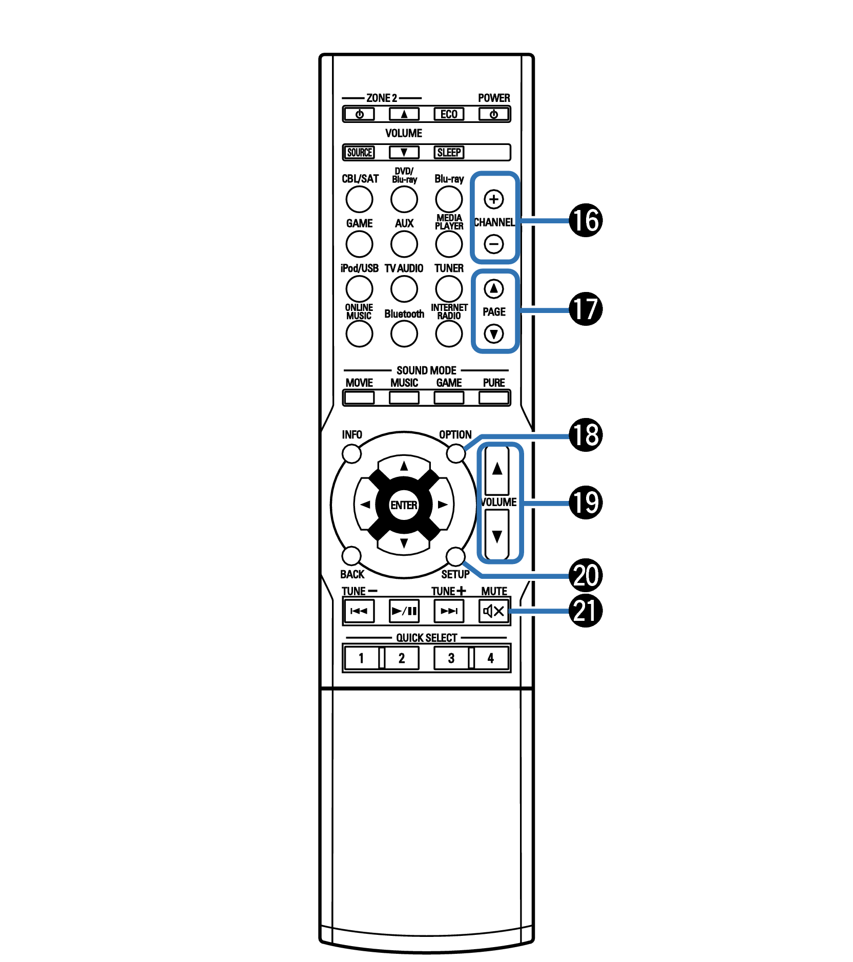 Ermöglichen das Aufrufen von Einstellungen, die für jede Taste gespeichert wurden, beispielsweise Einstellungen für Eingangsquelle, Lautstärkepegel und Klangmodus. Link