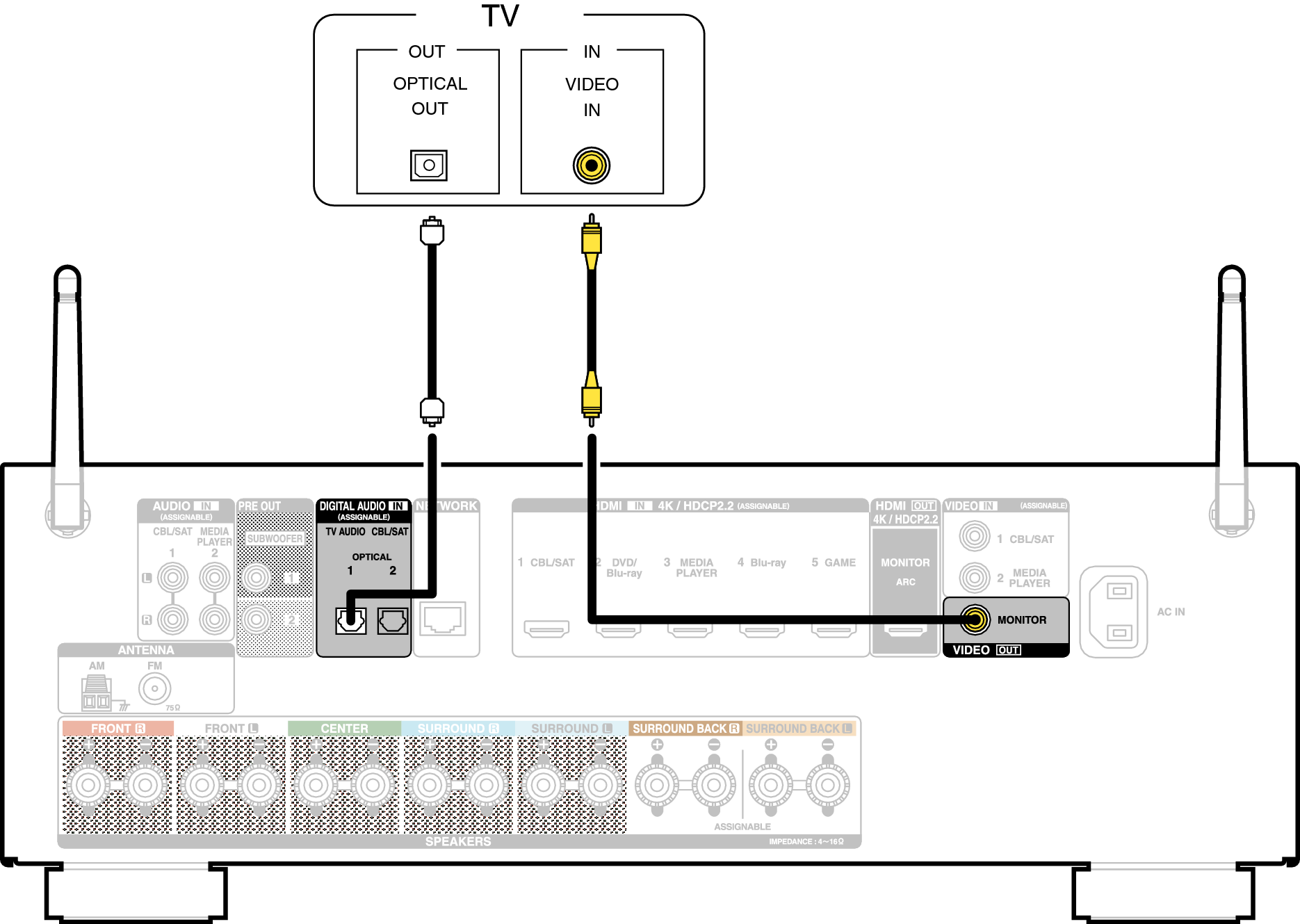 Pour écouter l’audio du téléviseur sur cet appareil, utilisez le câble optique pour connecter le téléviseur à cet appareil.