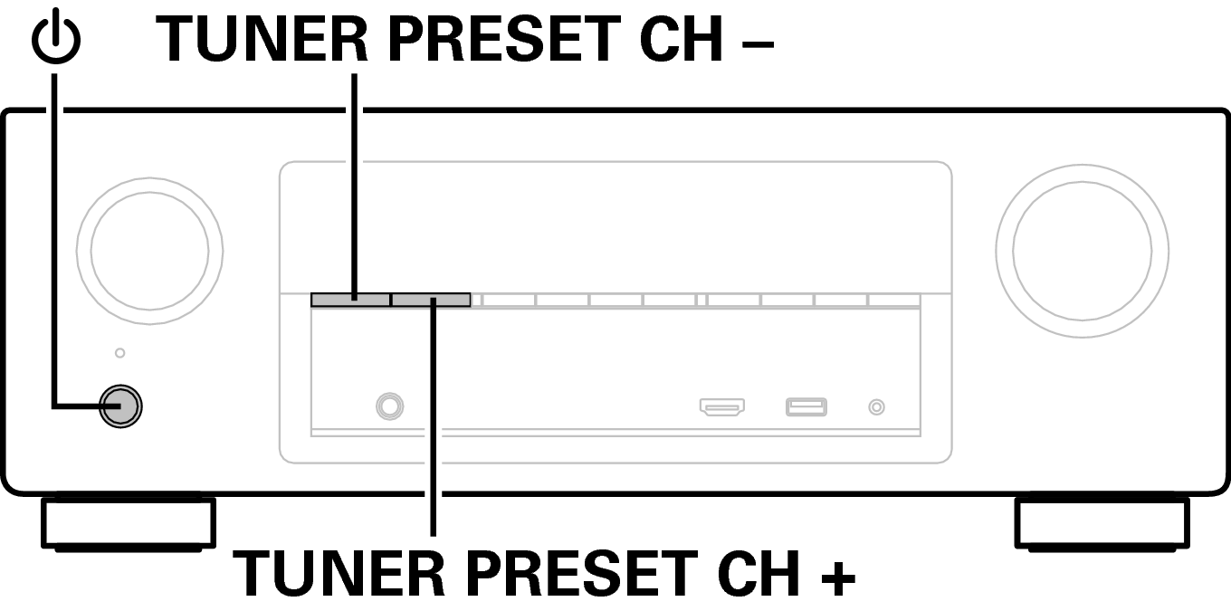 und gleichzeitig TUNER PRESET CH + und TUNER PRESET CH -.