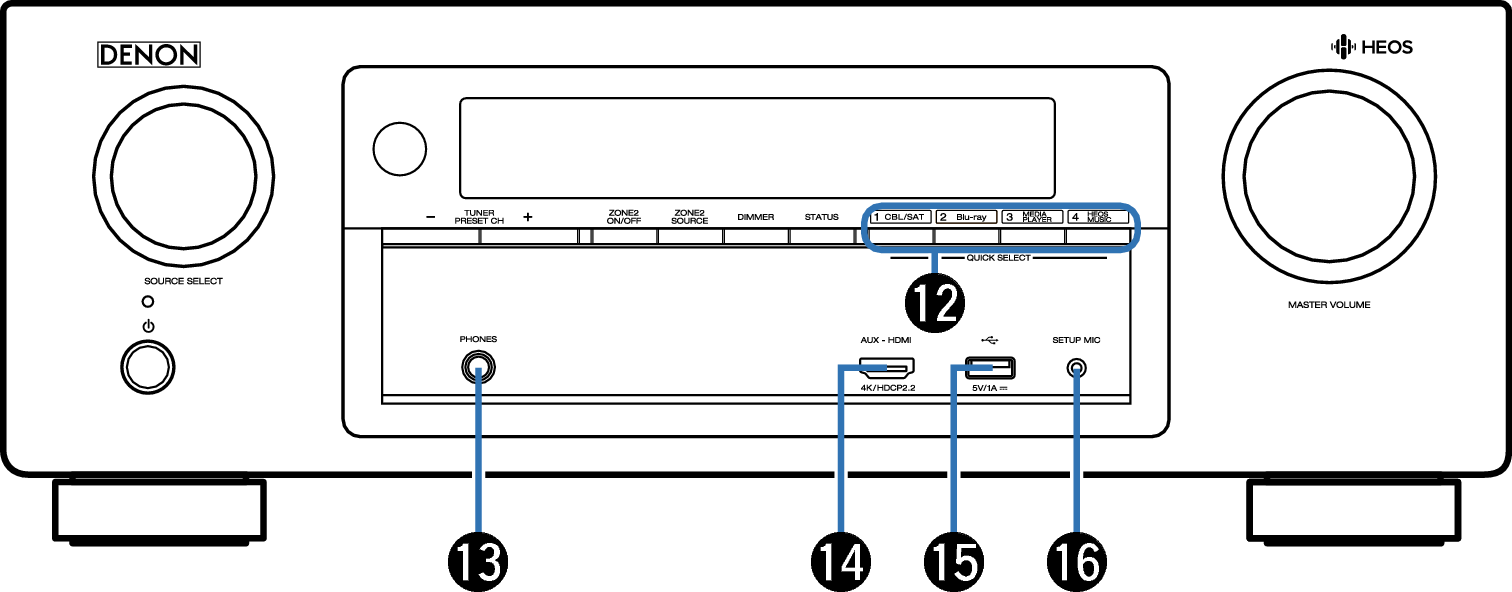 При подключении наушников к этому разъему звук перестает выводиться через акустическую систему или через разъемы SUBWOOFER.