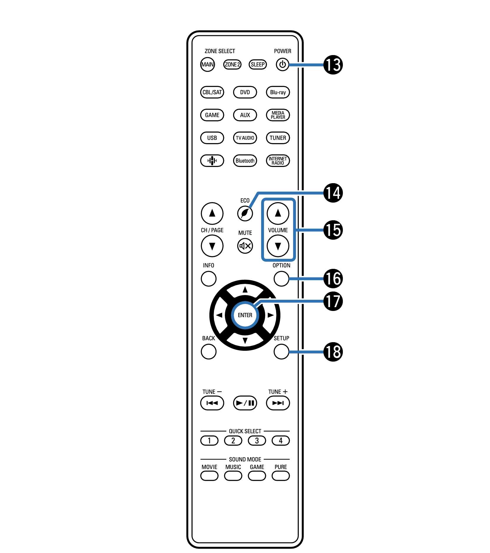 Ces touches permettent de changer la zone (MAIN ZONE, ZONE2) pilotée par la télécommande.