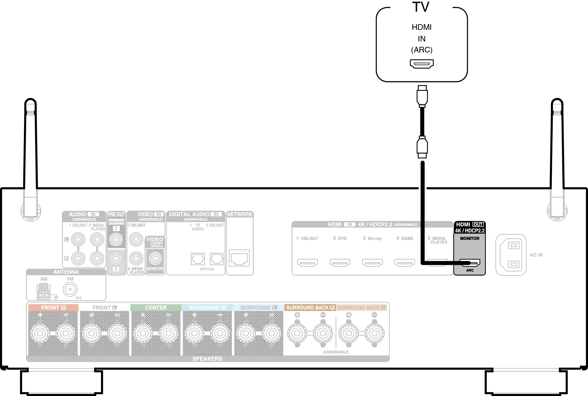 Réglez “HDMI Contrôle” sur “Marche” lorsque vous utilisez un téléviseur prenant en charge la fonction ARC. lien