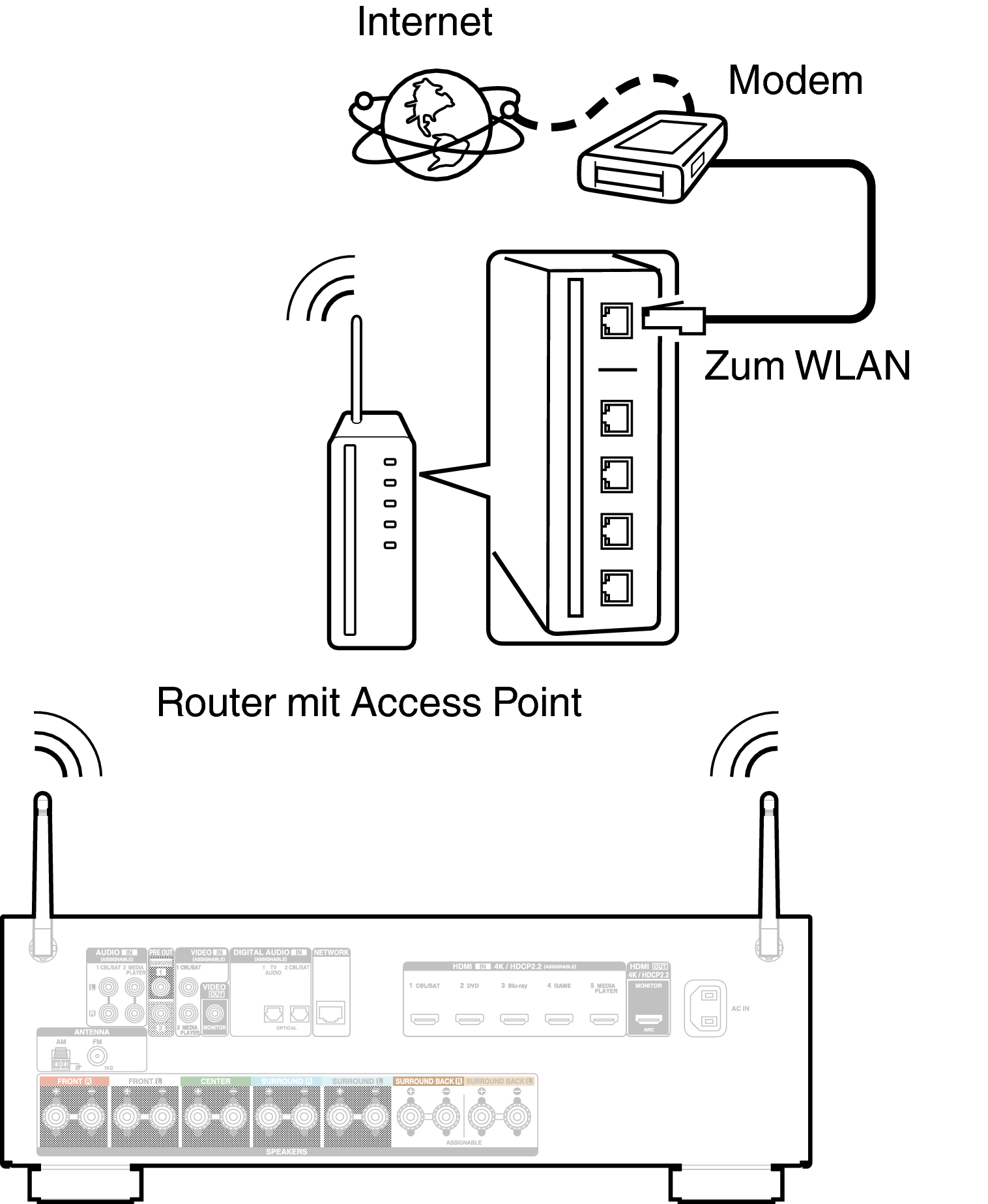 Weitere Informationen zum Anschließen eines WLAN-Routers finden Sie unter “WLAN-Konfig.”. Link