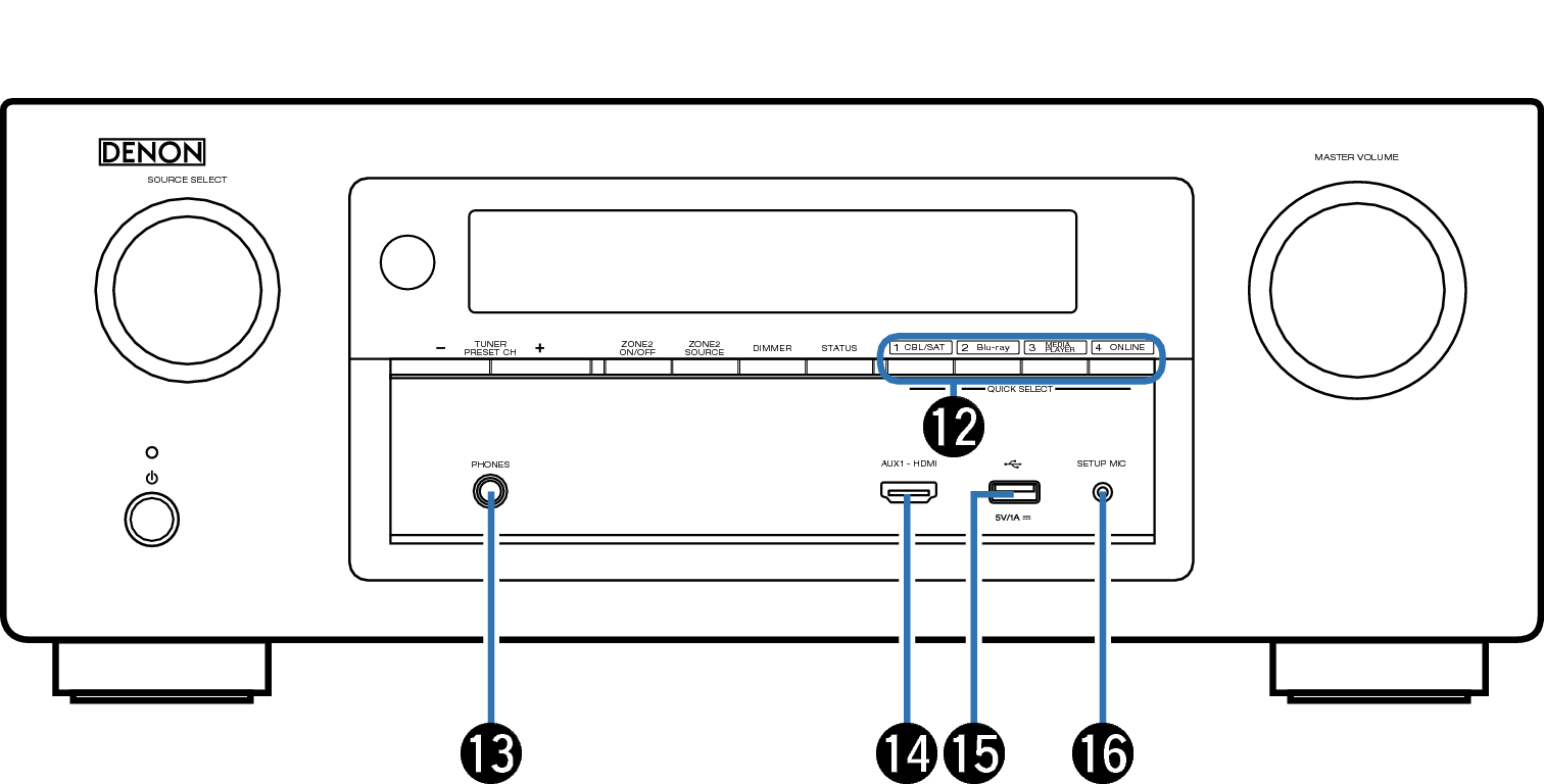 Met één druk op een van deze knoppen kunt u verschillende instellingen oproepen die voor elke toets zijn geregistreerd, zoals de instellingen voor de ingangsbron, het volumeniveau en de geluidsmodus. koppeling
