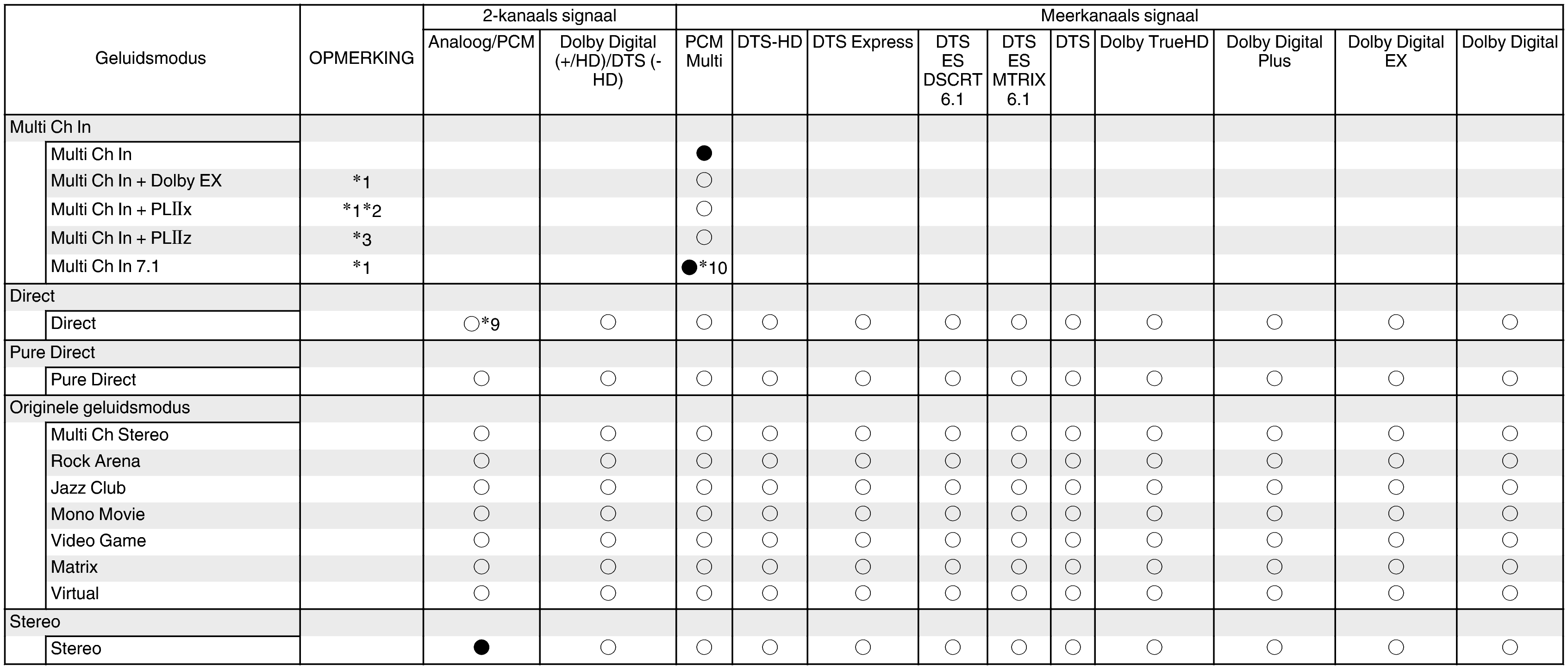 ∗1 – ∗3, ∗9, ∗10 : De typen ingangssignaal en de bijbehorende geluidsmodikoppeling