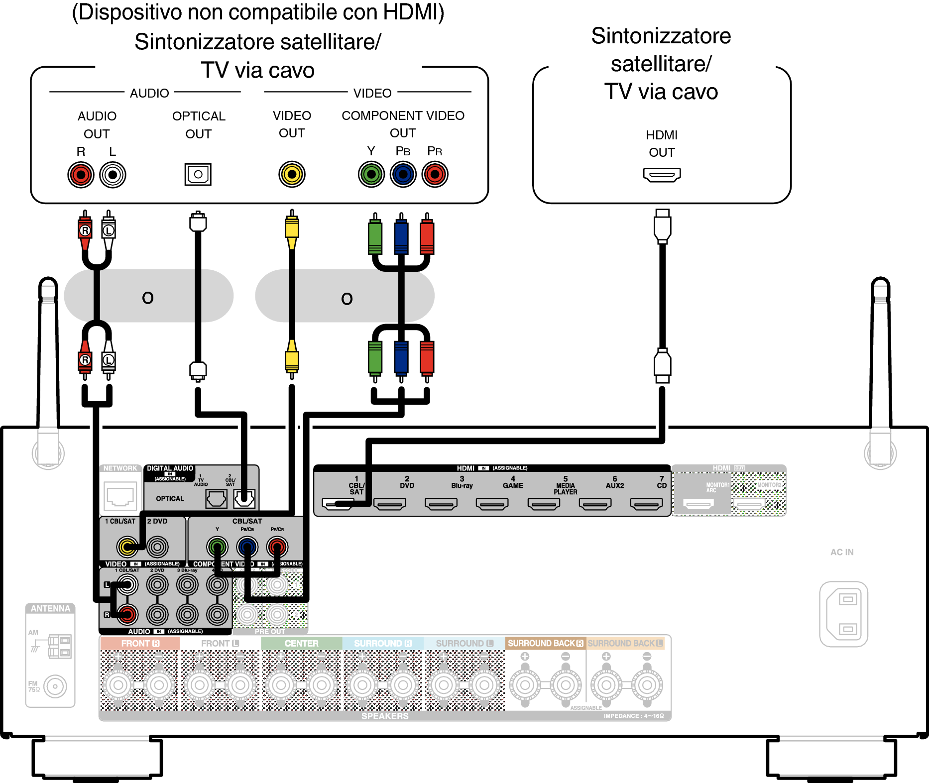 Collegamento di un ricevitore (Sintonizzatore satellitare/TV via cavo)