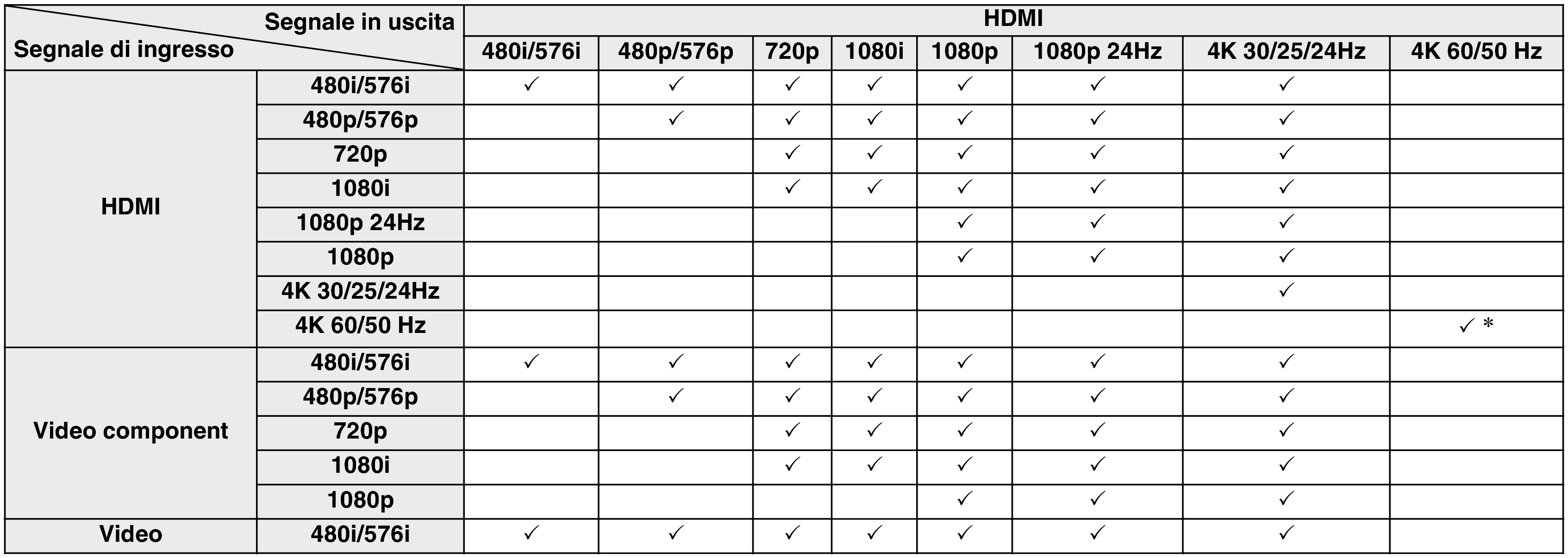 Questa unità può convertire i segnali video in ingresso utilizzando la risoluzione impostata per “Risoluzione” nel menu prima di trasmetterli sulla TV. link