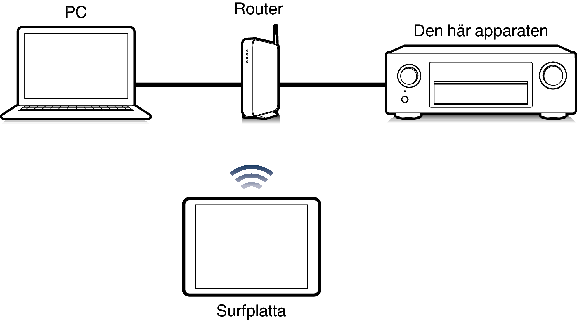 Den här enheten och datorn måste vara rätt anslutna till nätverket för att webbkontrollfunktionen ska kunna användas. (Ansluta till ett hemmanätverk (LAN)länk)
