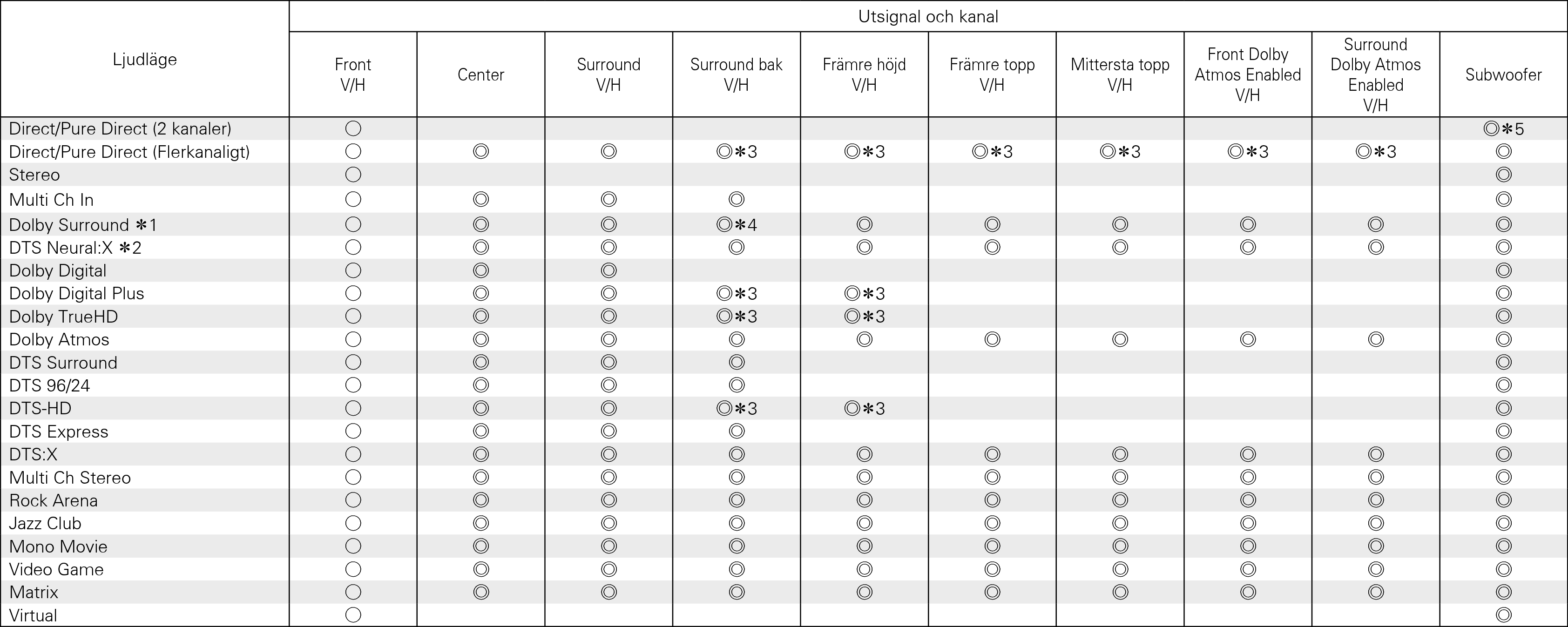 De valbara ljudlägena inkluderar “DTS Neural:X” och ljudlägen som har “+Neural:X” i namnet på ljudläget.