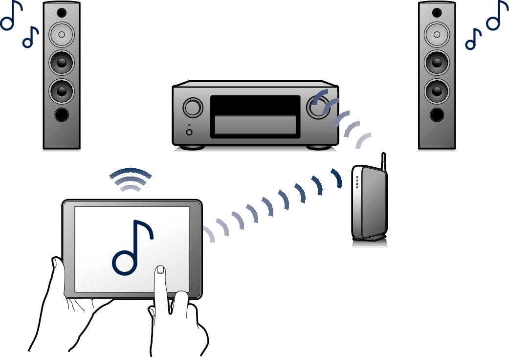 Kompatibel med “Denon 2015 AVR Remote”∗ för att utföra grundläggande funktioner på enheten via en iPad, iPhone eller Android™-enheter (Google, Amazon Kindle Fire)