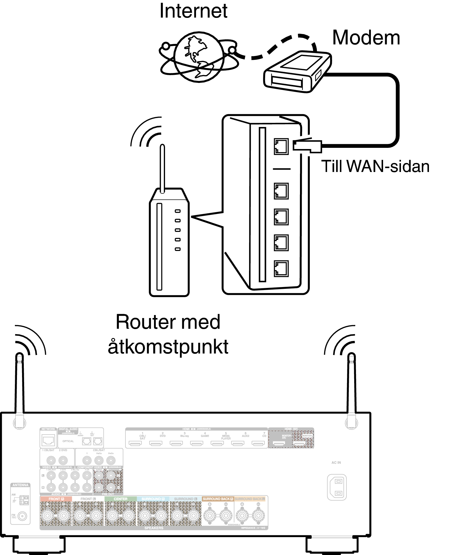 Router-typer som kan användas beror på din Internet-leverantör. Kontakta din Internet-leverantör eller en datoraffär för närmare anvisningar.