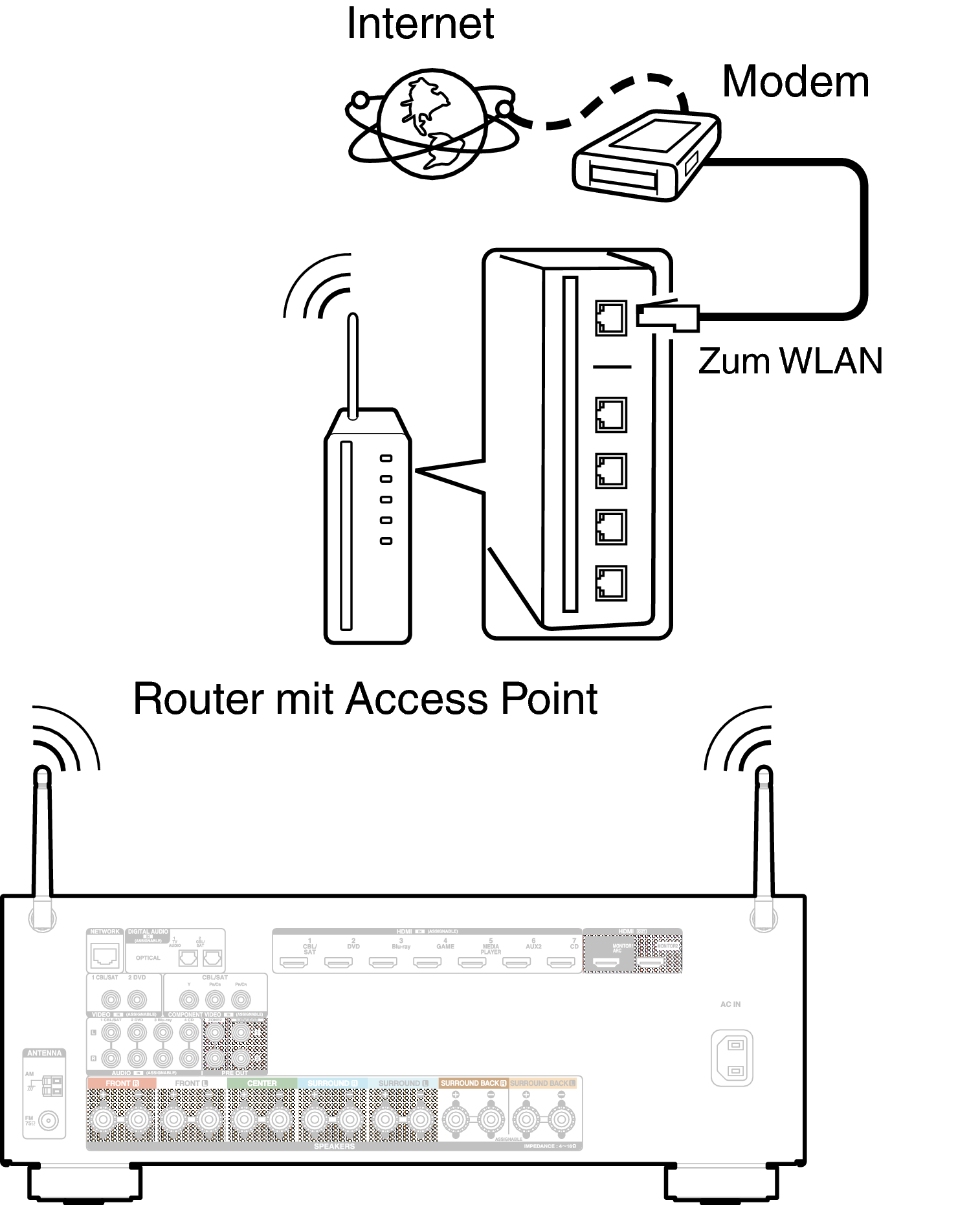 Weitere Informationen zum Anschließen eines WLAN-Routers finden Sie unter “WLAN-Konfiguration”. Link