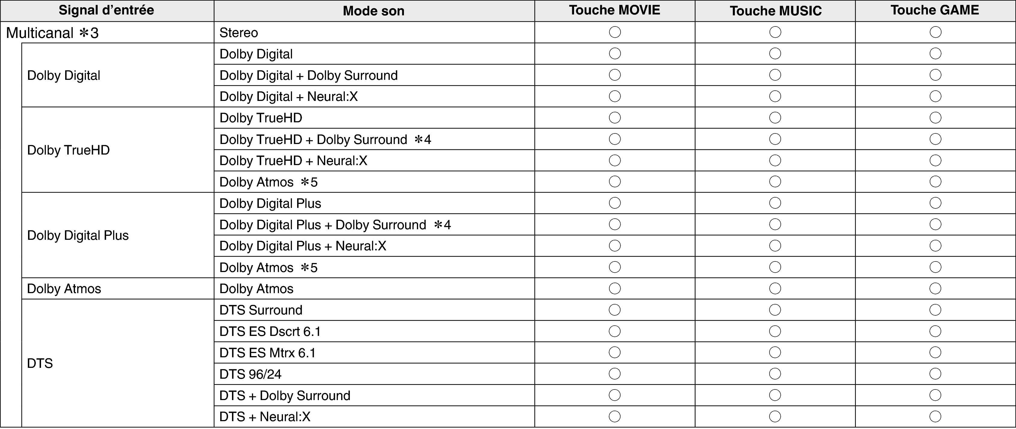 Peut être sélectionné lorsque le signal d’entrée contient pas de Dolby Atmos.