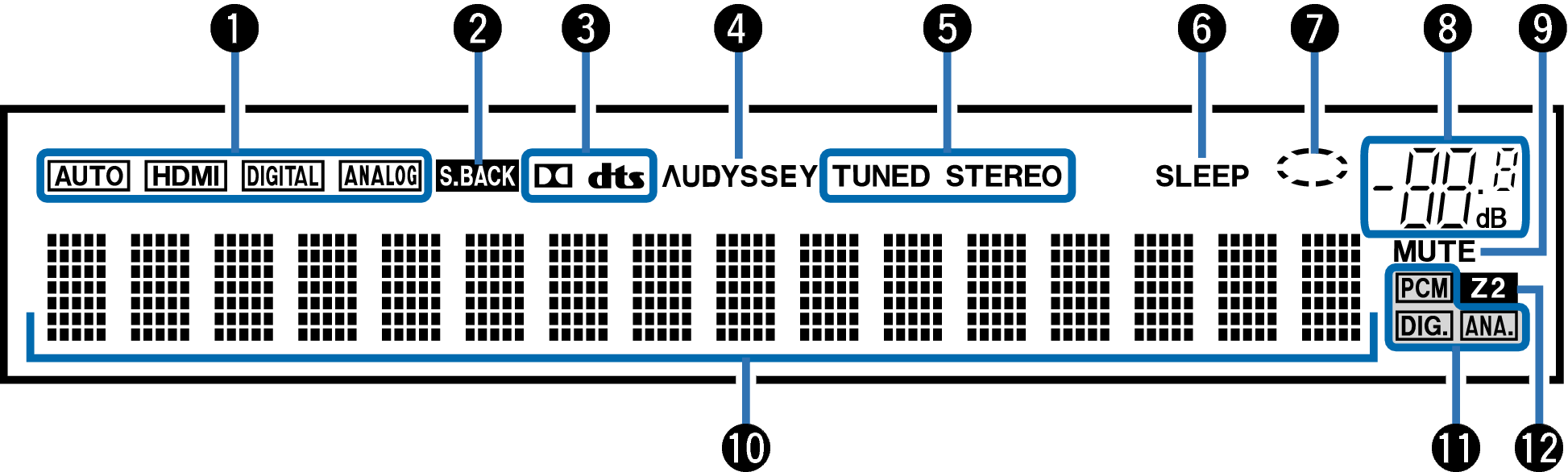 Se iluminan según las condiciones de recepción cuando la fuente de entrada está ajustada a “Tuner”.