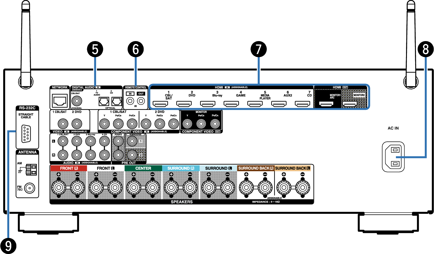 Terminales de altavoces (SPEAKERS)