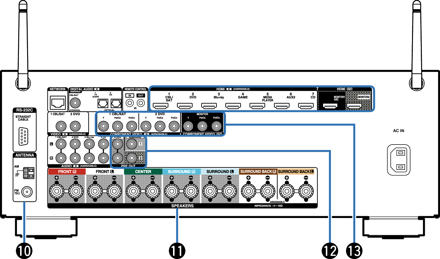Terminales de antena FM/AM (ANTENNA)