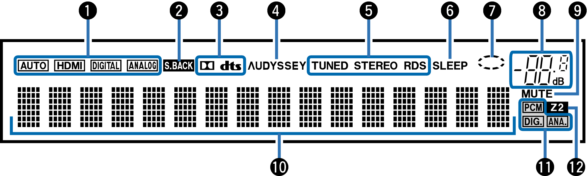 Leuchten, wenn Dolby- oder DTS-Signale empfangen werden oder der Dolby- oder DTS-Decoder läuft.