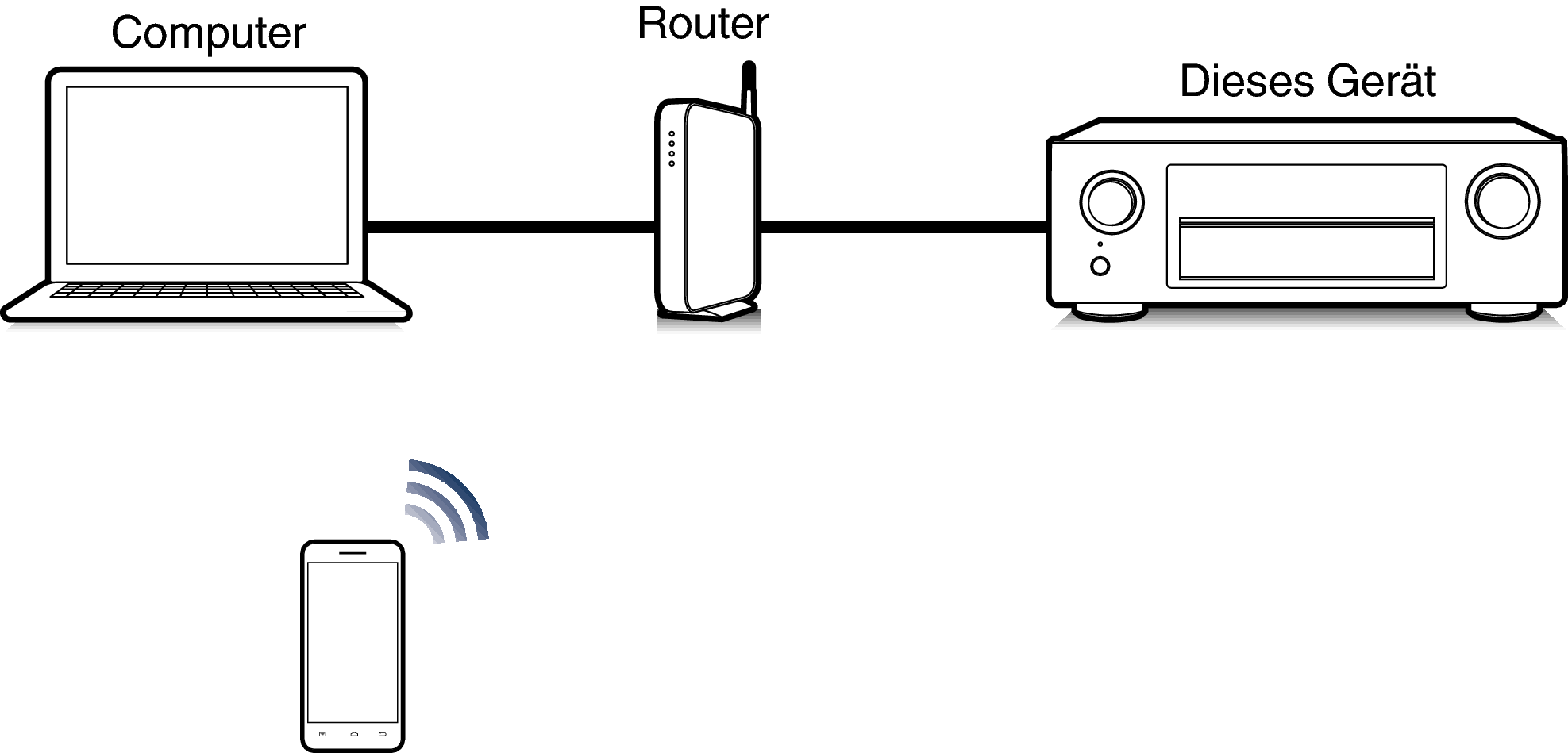 Auf einem iPhone, iPod touch, iPad oder in iTunes gespeicherte Musikdateien können über das Netzwerk wiedergegeben werden.