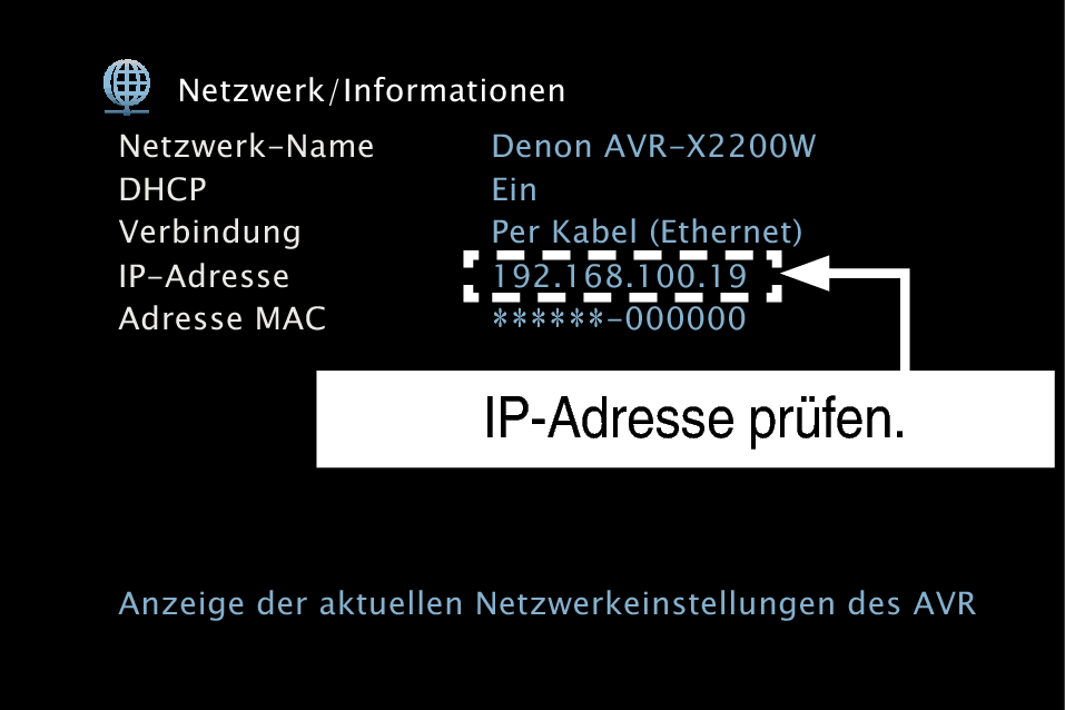 Zur Kontrolle der IP-Adresse dieses Gerätes wählen Sie im Menü “Informationen”. Link