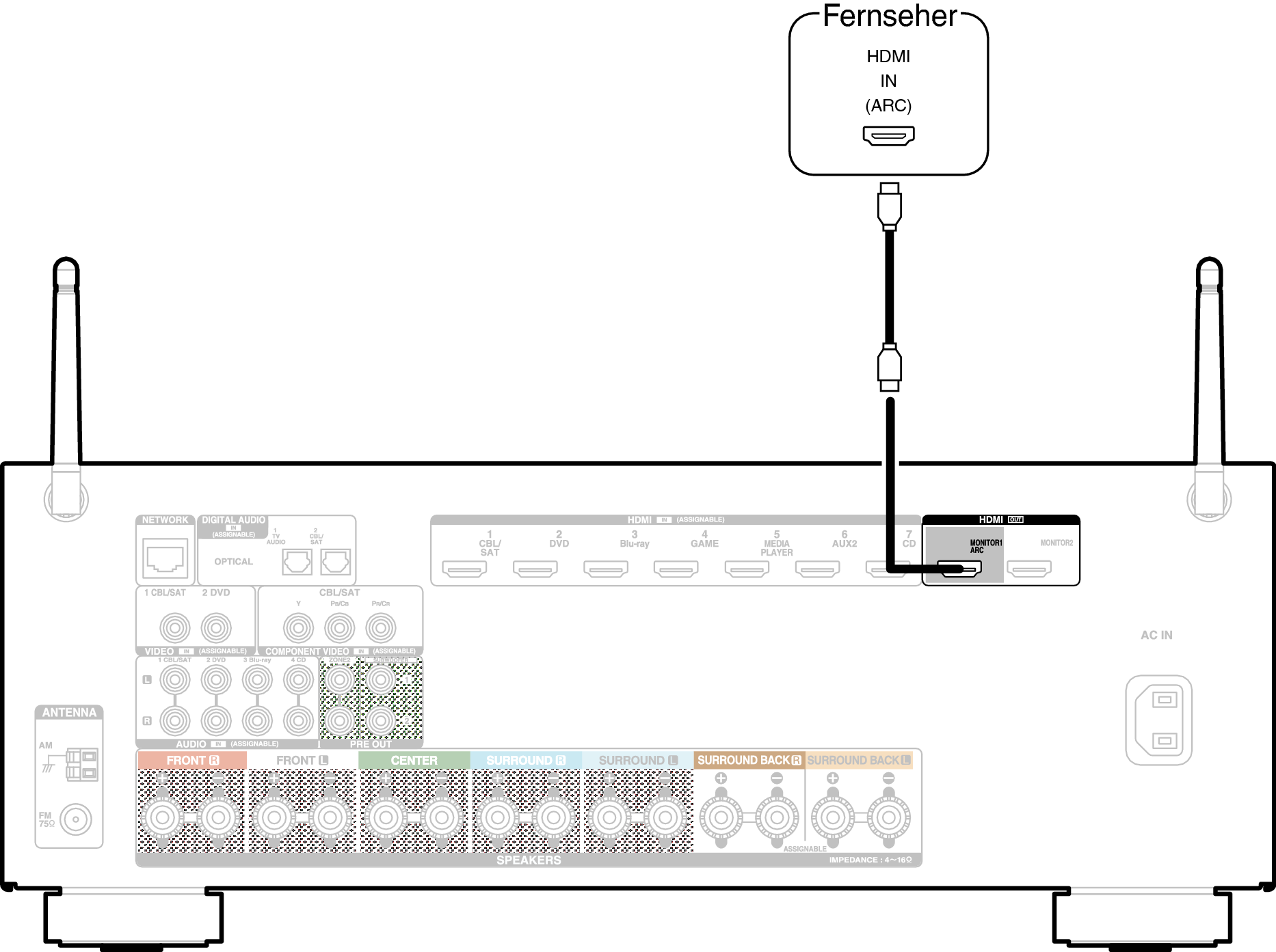 Verwenden Sie ein HDMI-Kabel, um einen mit der ARC-Funktion dieses Geräts kompatiblen Fernseher anzuschließen.