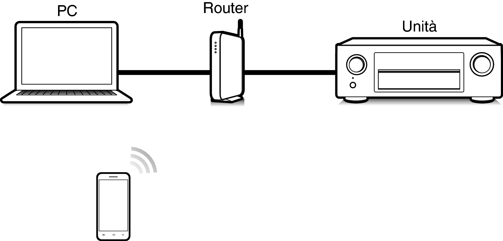 I file musicali memorizzati in un iPhone, un iPod touch, un iPad o su iTunes possono essere riprodotti su questa unità attraverso la rete.