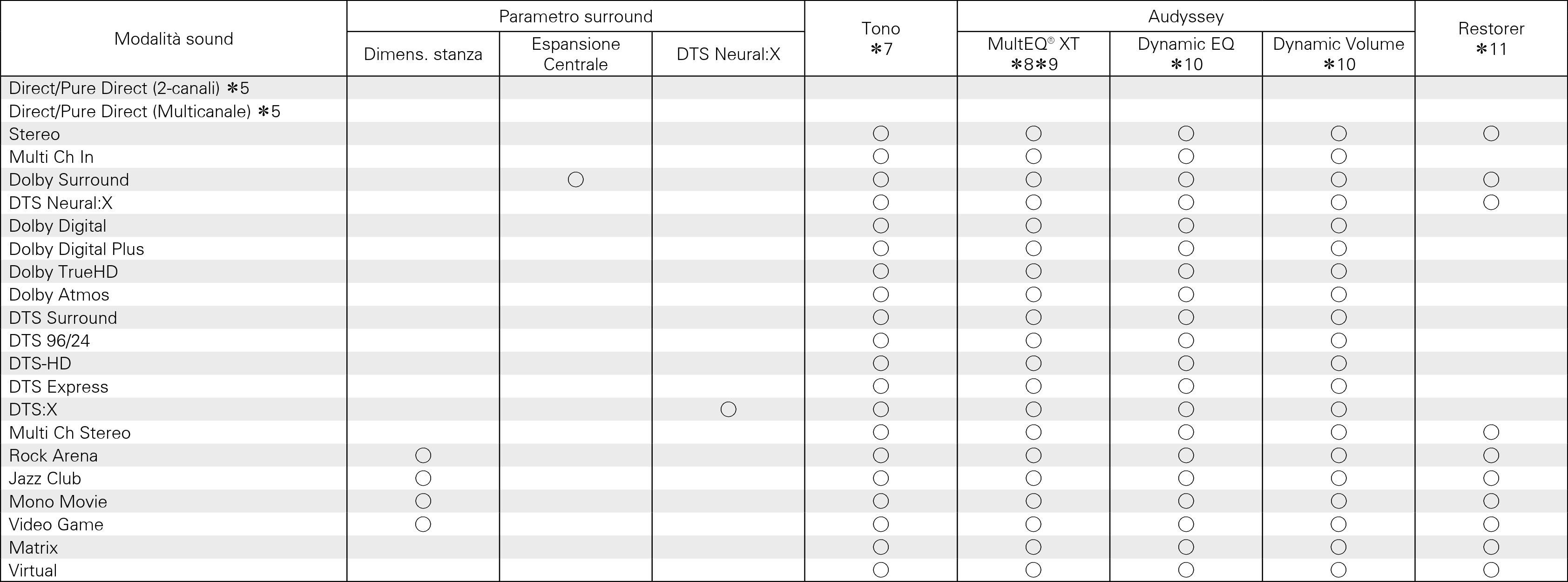 Non è possibile selezionare questa voce quando si riceve in ingresso un formato DTS:X con una frequenza di campionamento superiore a 48 kHz.