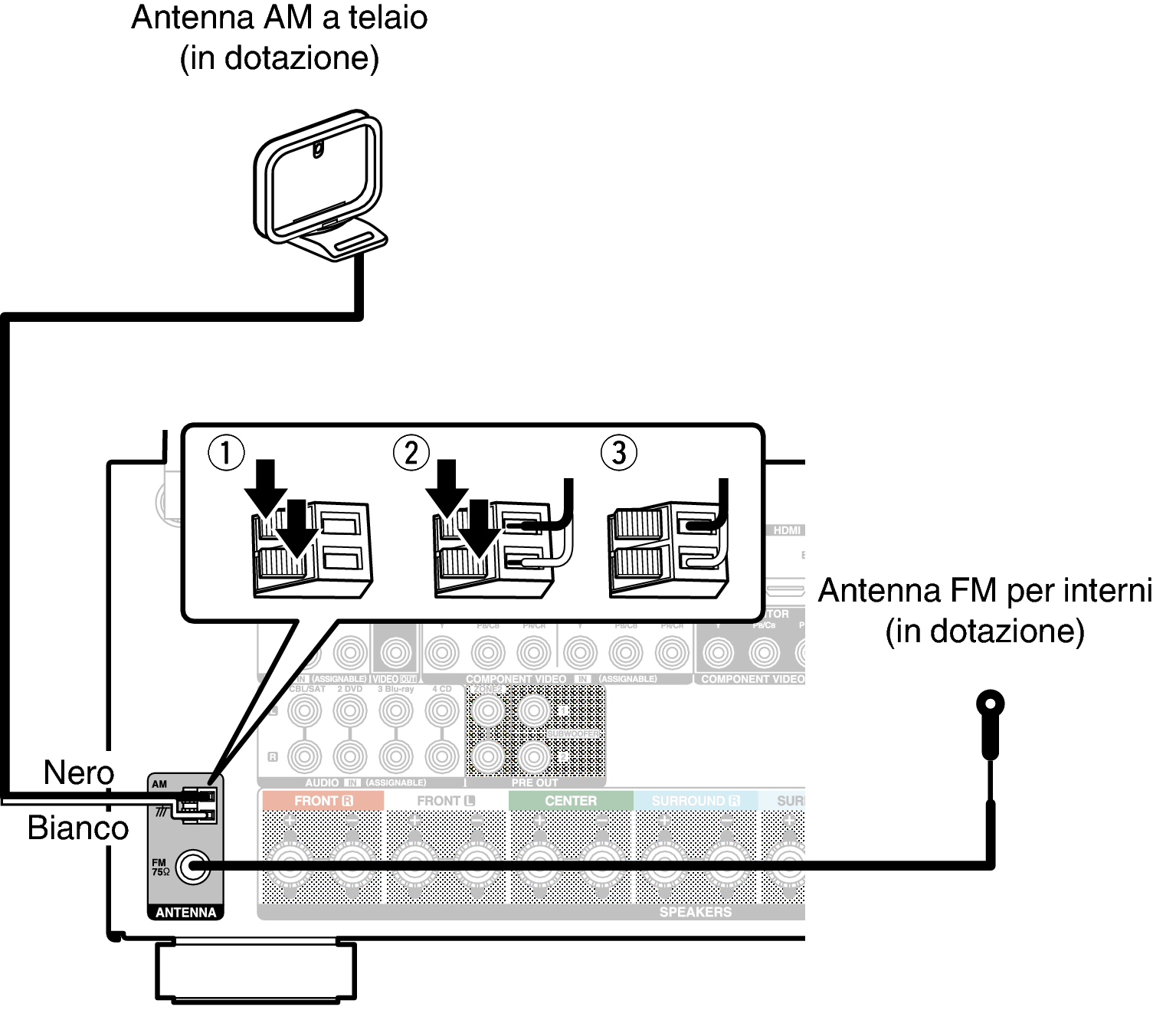 Assicurarsi che i terminali in piombo dell’antenna AM a telaio non tocchino le parti metalliche del pannello.