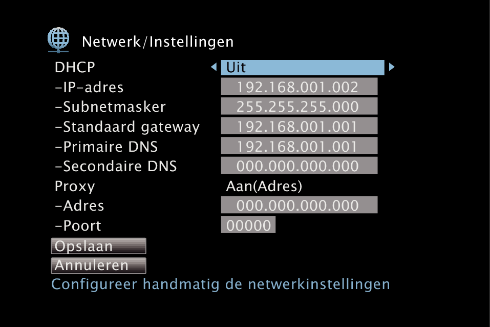 Configureer de netwerkinstellingen automatisch vanaf uw router. |