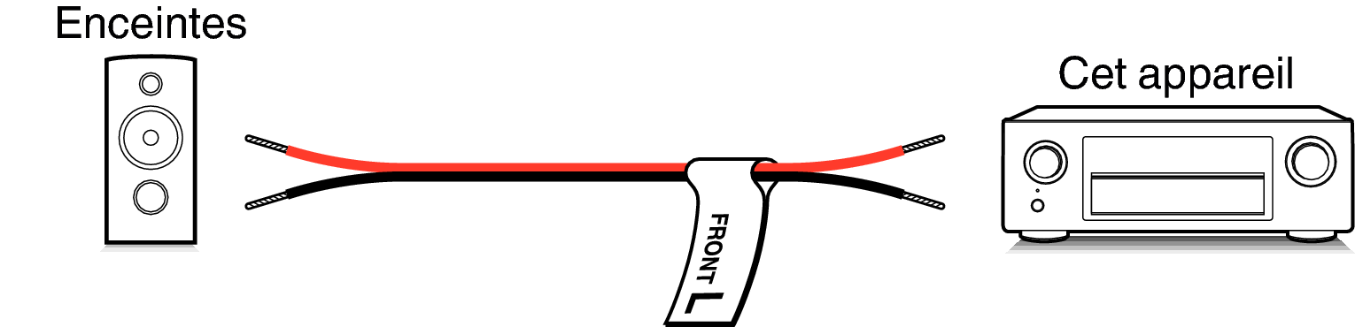 Fixez l’étiquette du câble correspondant à chaque enceinte sur chacun des câbles d’enceinte. Cela facilite le branchement du câble approprié sur les bornes d’enceintes du panneau arrière.