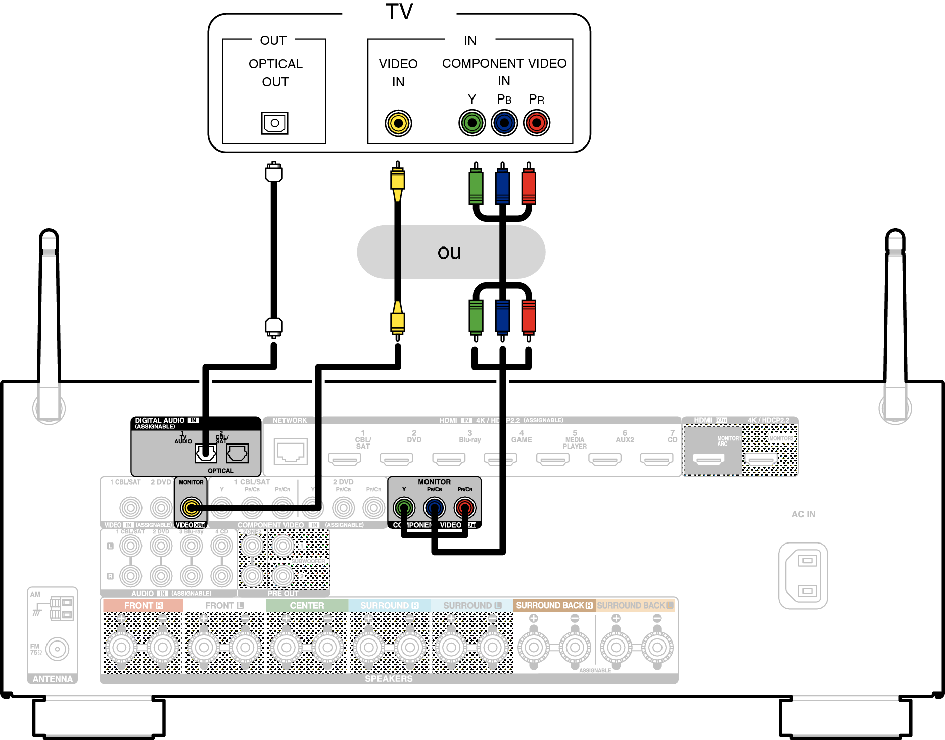 Utilisez un câble vidéo composante ou un câble vidéo pour connecter le téléviseur à cet appareil.