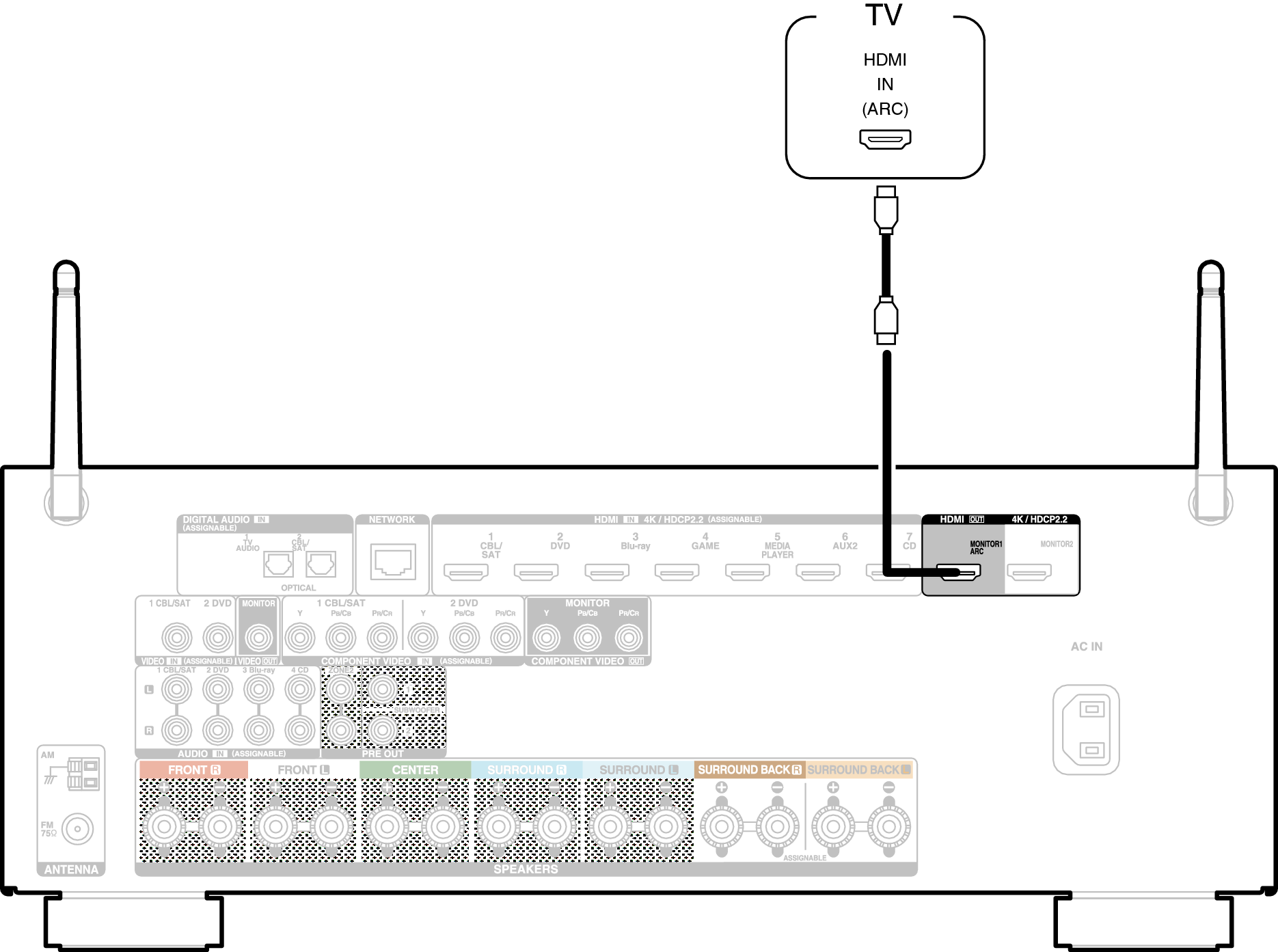 Lors de l’utilisation de la fonction ARC, connectez à la borne HDMI MONITOR 1.