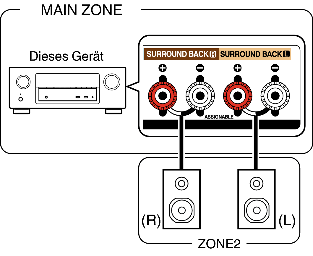 Wenn “Zuweisung” im Menü auf “Zone2” eingestellt ist, erfolgt die Audioausgabe in ZONE2 über den SURROUND BACK-Lautsprecheranschluss. Link