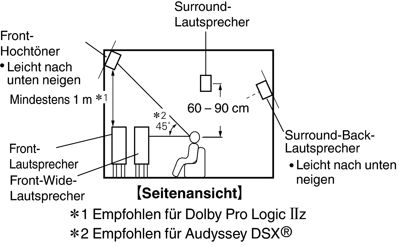Wenn Sie Audyssey DSX® verwenden, installieren Sie Fronthochtöner oder Front-Wide-Lautsprecher.