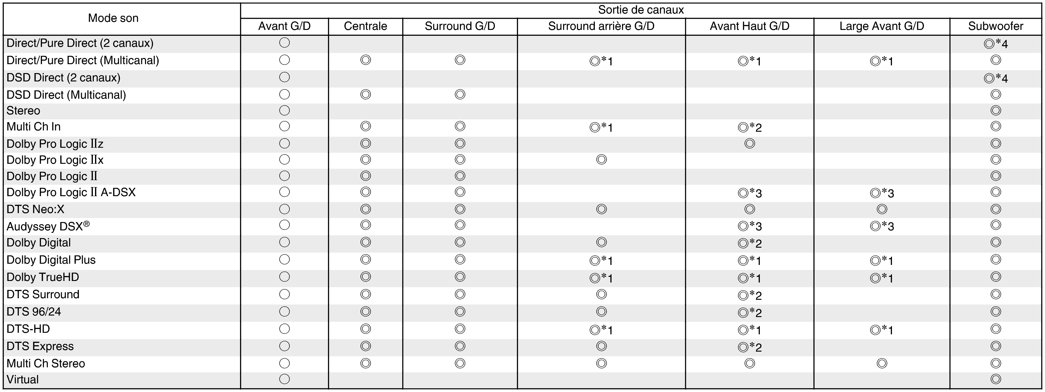 Modes audio et canaux de sortie