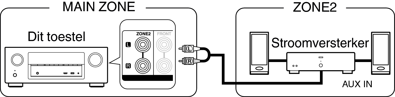 De audiosignalen van de ZONE2 audio-uitgangen van dit toestel worden uitgevoerd naar de ZONE2-versterkers en weergegeven op deze versterkers.