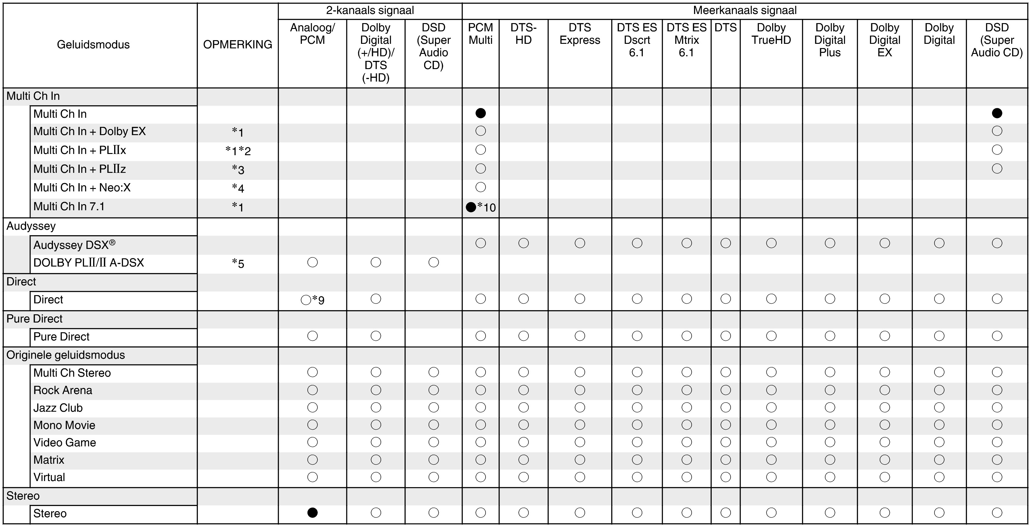∗1 – ∗5, ∗9, ∗10 : De typen ingangssignaal en de bijbehorende geluidsmodikoppeling