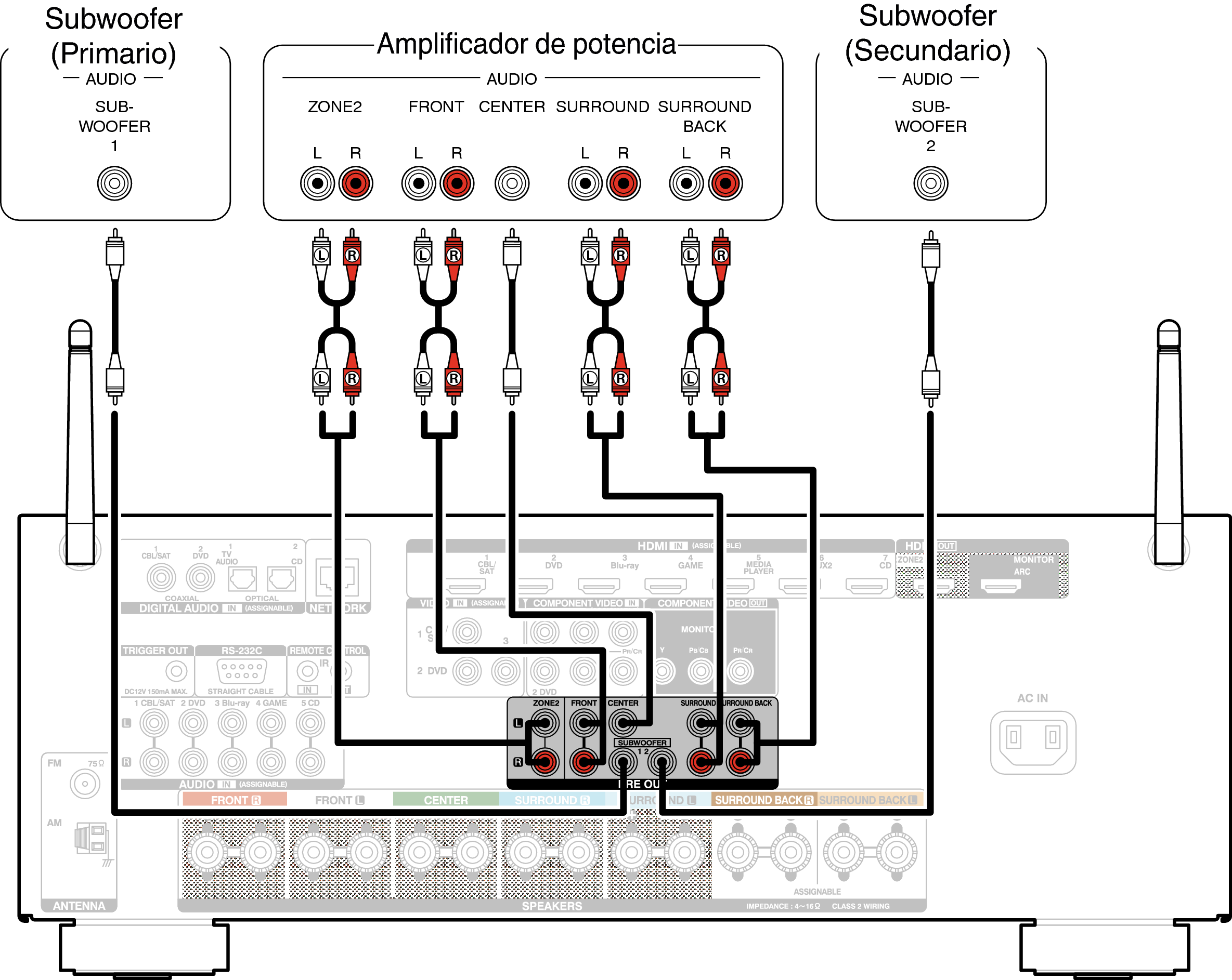 5.1 canales (conexión de amplificación doble de altavoz delantero)
