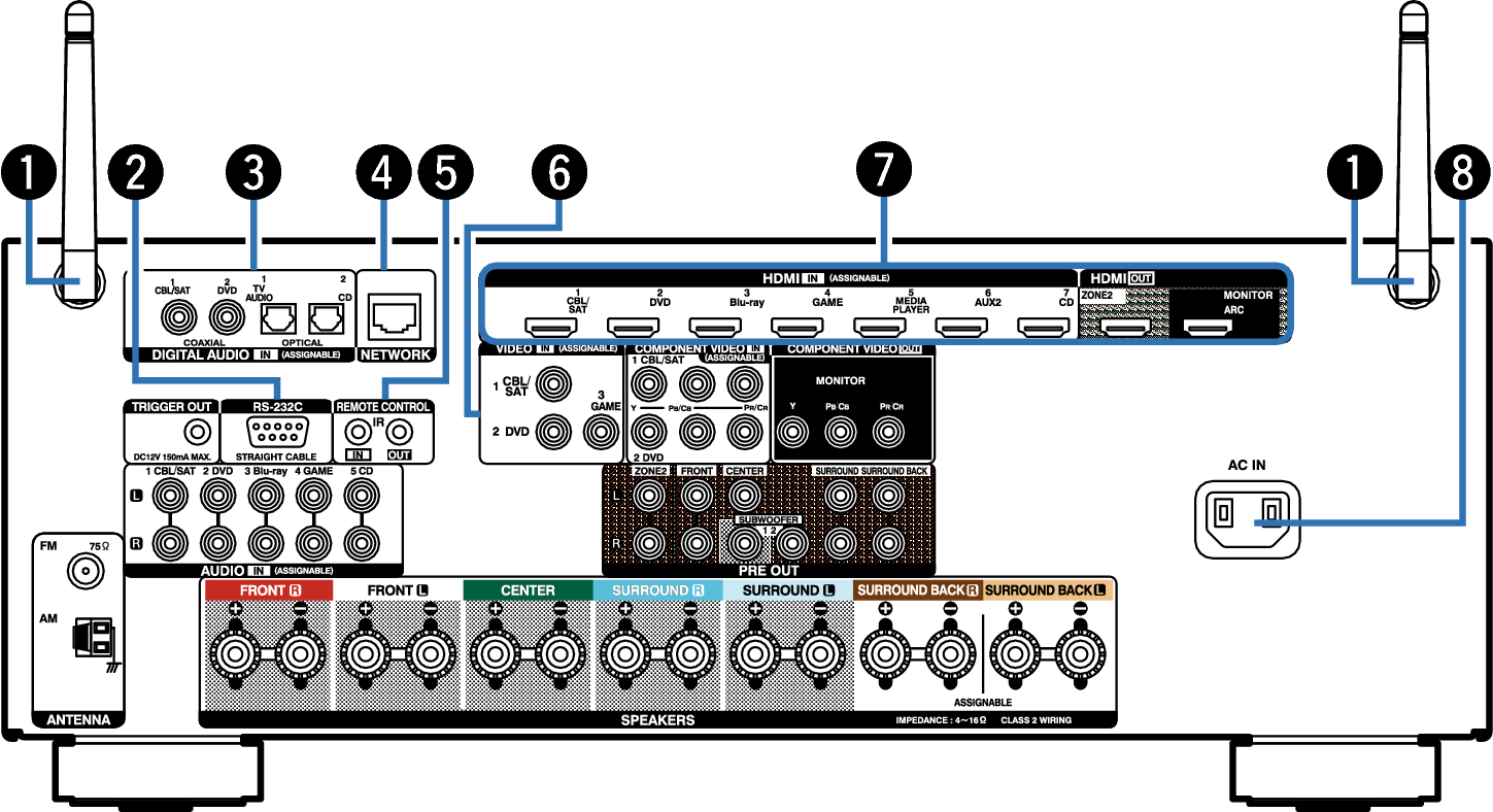 Utilisées pour connecter des récepteurs/transmetteurs infrarouges capables de commander cet appareil et les appareils externes depuis une autre pièce. lien
