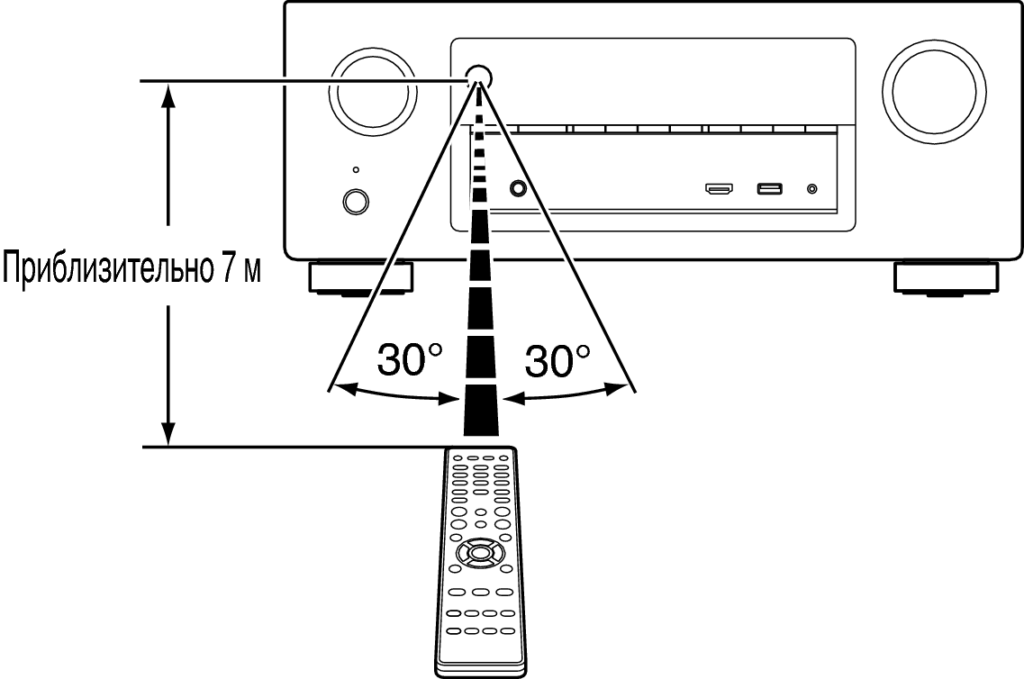 При управлении направляйте пульт ДУ на датчик ДУ.