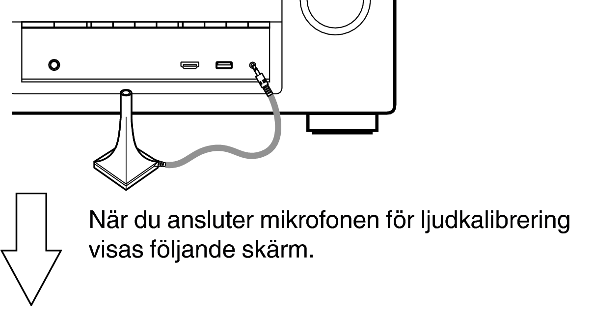 När du monterar mikrofonen för ljudkalibrering ska spetsen riktas mot taket och höjden ska vara den samma som lyssnarens öron då den sitter ner.
