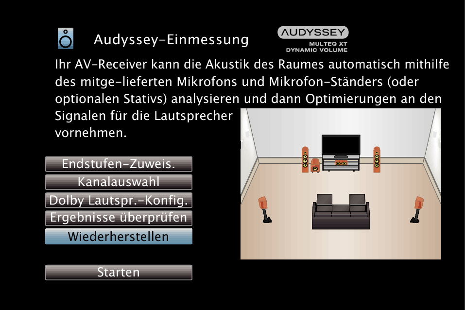 Wiederherstellen der Einstellungen von “Audyssey®-Einmessung”