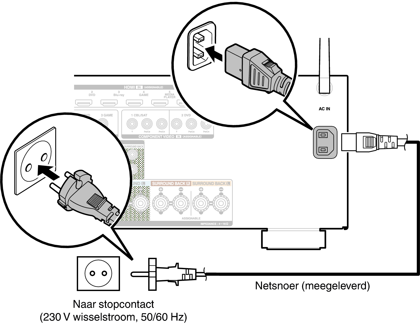 Stop de stekker in het stopcontact nadat u alle aansluitingen hebt voltooid.