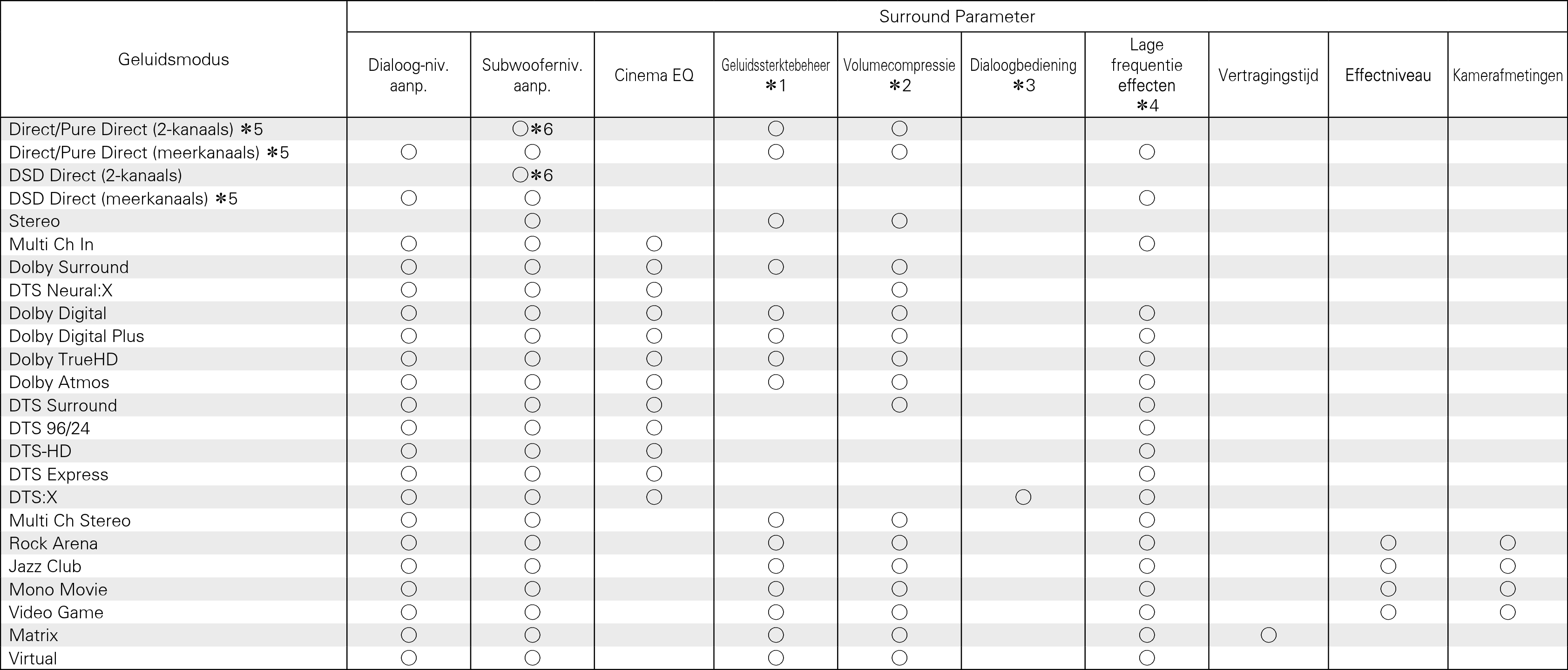 Tijdens weergave in de Pure Direct-modus zijn de surround parameters dezelfde als in de Direct-modus.
