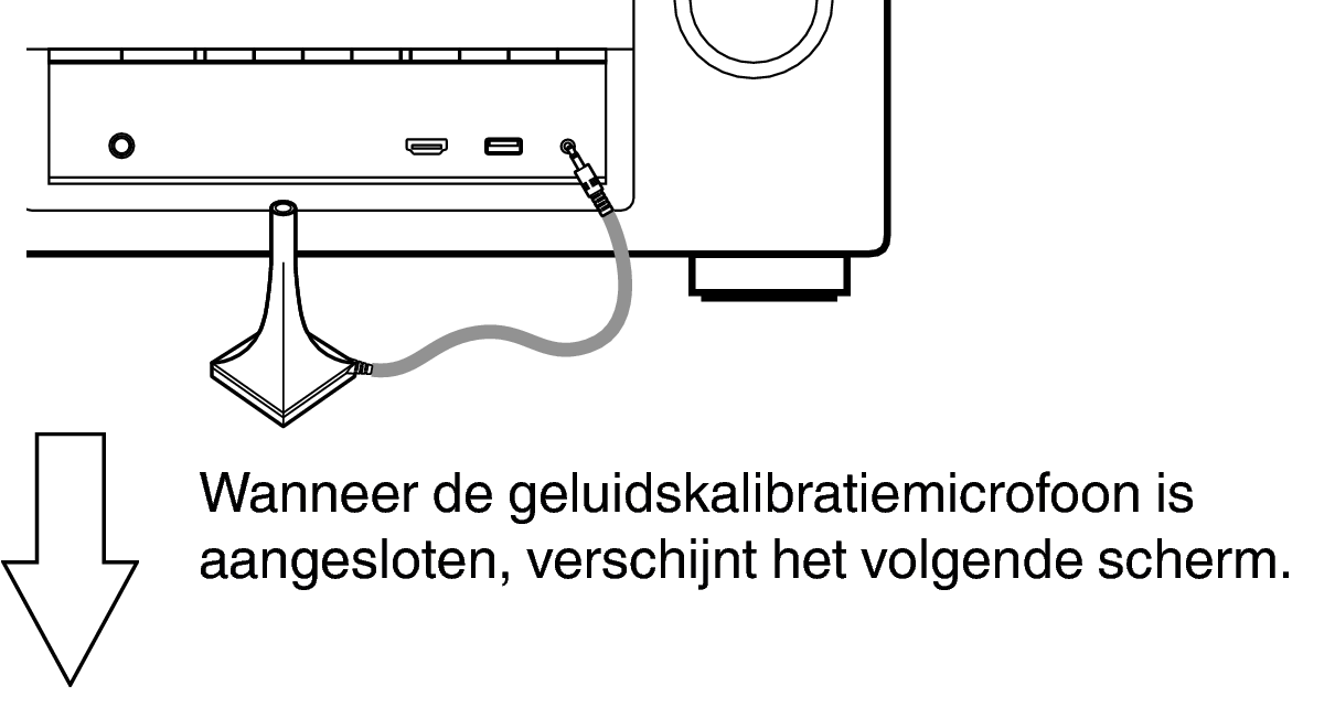 Wanneer u de geluidskalibratiemicrofoon installeert, wijst u de punt van de microfoon naar het plafond en stelt u de hoogte af volgens de hoogte van de oren van een zittende luisteraar.