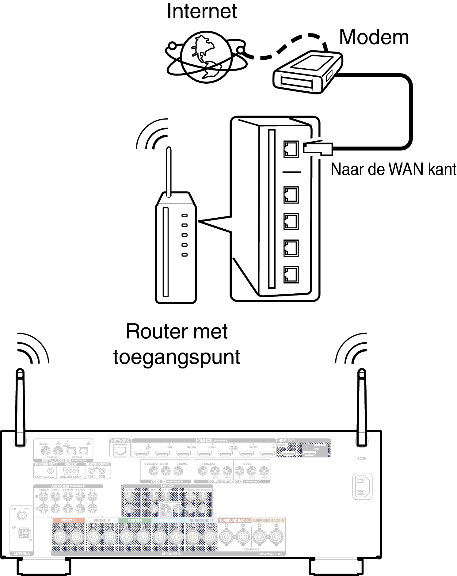 Het type van router dat kan worden gebruikt, kan per internetprovider variëren. Neem voor details contact op met uw internetprovider of computerwinkel.