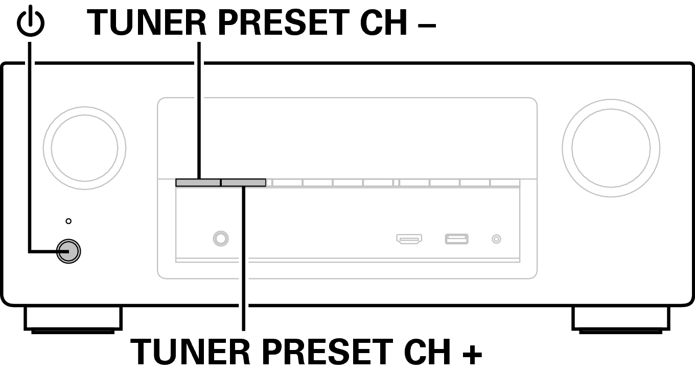 und gleichzeitig TUNER PRESET CH + und TUNER PRESET CH -.